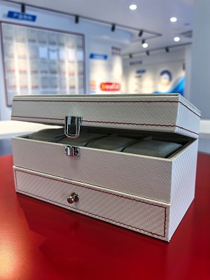 Fibra de carbono moderna y costuras estéticas: La serie de almacenamiento blanca presenta nuestras elegantes texturas de fibra de carbono. Combinados con nuestra capacidad de proporcionar cuero compatible con costuras rojas de alto contraste, estos materiales satisfacen la estética moderna, deportiva y de lujo que demandan los sectores de embalaje de relojes y joyas.